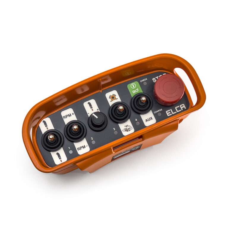 The MITO VETTA is the new professional radio remote control for single and double drum forestry winches developed and produced by ELCA. An innovative transmitting panel consisting of five toggle switches in line plus the Stop button, represents the best choice for professional operators who need to drive all the functions separately with single and double drum winches. The replaceable Lithium battery guarantees 50 hours autonomy (one week of work without recharging) with the new “easy click” charger system. The VETTA uses the same LBT technology (Listen Before Talk) found in the ALPI system, able to work continuously without any radio disturbances and is fully compatible with the existing ALPI receivers. The system is suitable for all kind of winches, including those equipped with hydraulic unwinding device. Compact and ergonomic size, lightweight (400g), resistant to falls and external elements (IP65), designed with a comfortable belt loop for nylon and leather belts. The complete VETTA kit includes a transmitter, receiver, battery charger (12/24 Vdc and 220 Vac), waist belt, receiver wiring with 7/13 pole connector